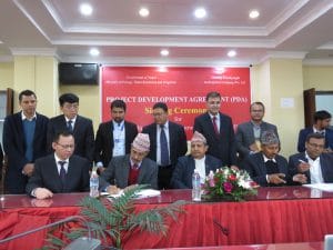 हालसम्म नेपाल र विदेशी लगानीकर्ता रहेका आयोजनाबीच सात पीडीए भएकामो चीनीयाँ कम्पनीसँगको यो पहिलो हो । ऊर्जा, जलस्रोत तथा सिञ्चाई मन्त्रालयका सचिव दिनेश घिमिरेको उपस्थितीमा आइतबार ऊर्जा मन्त्रालयमा आयोजित कार्यक्रममा मन्त्रालयका सह–सचिव मधु भेटुवाल र कम्पनीका तर्फबाट बिपिसीका प्रमुख कार्यकारी अधिकृत उत्तरकुमार श्रेष्ठबीच पीडीएमा हस्ताक्षरभ एको छ ।